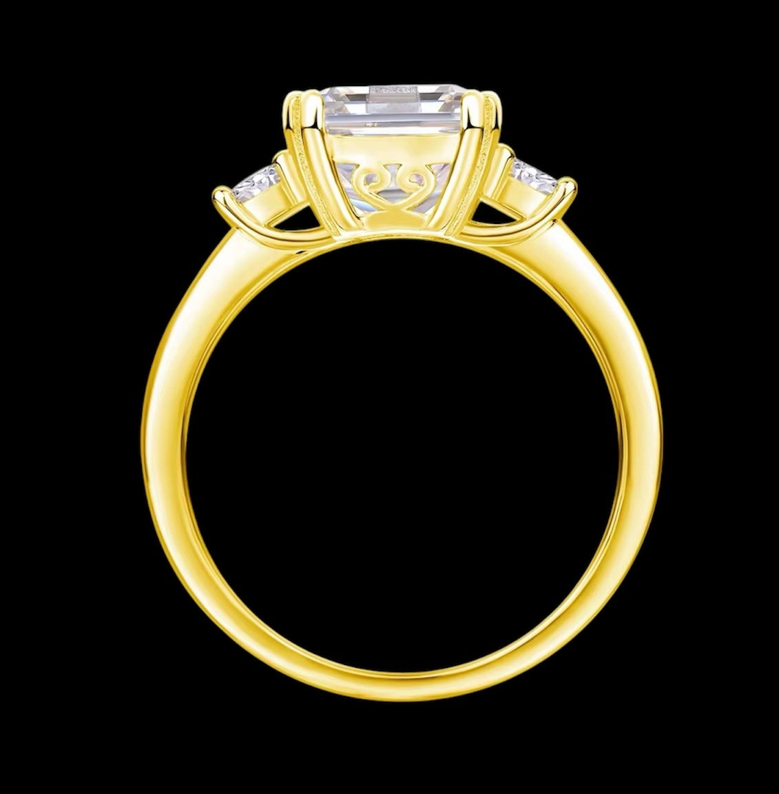 Pierre : Moissanite VVS1 (coupe émeraude + 2 coupe ronde)