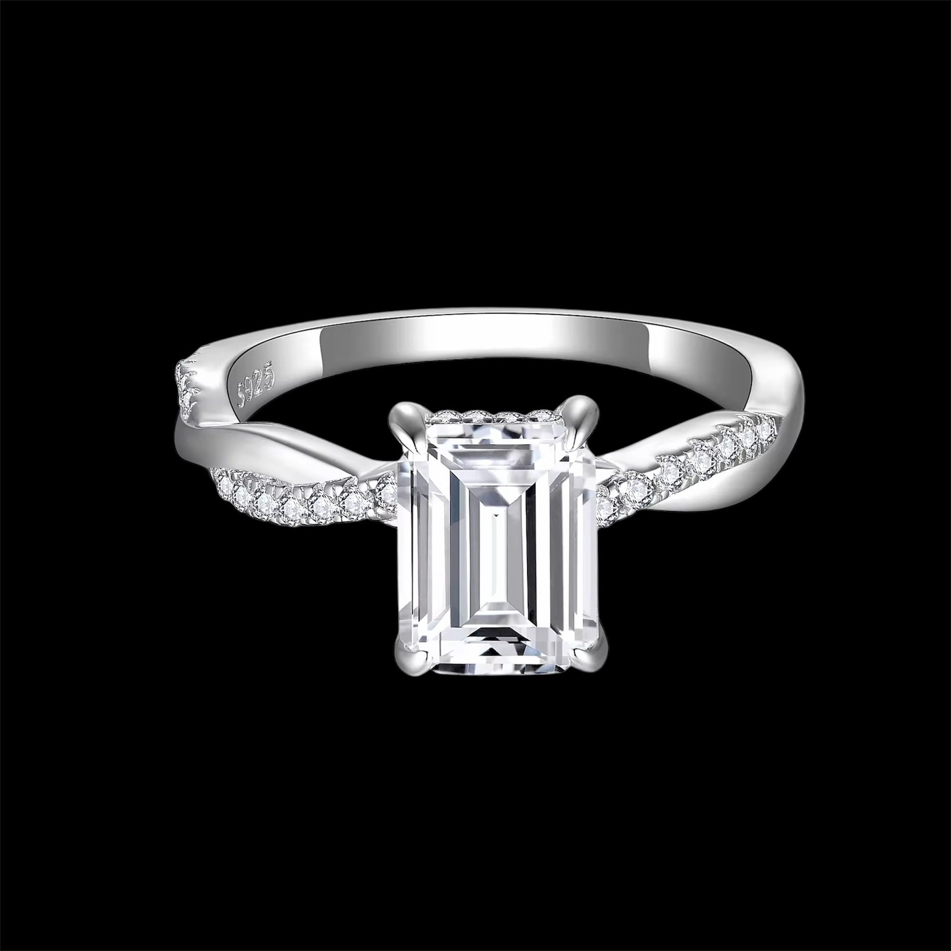 Bague Tressée en Moissanite VVS1 Coupe Émeraude – Argent 925 Finition Or 18Kt