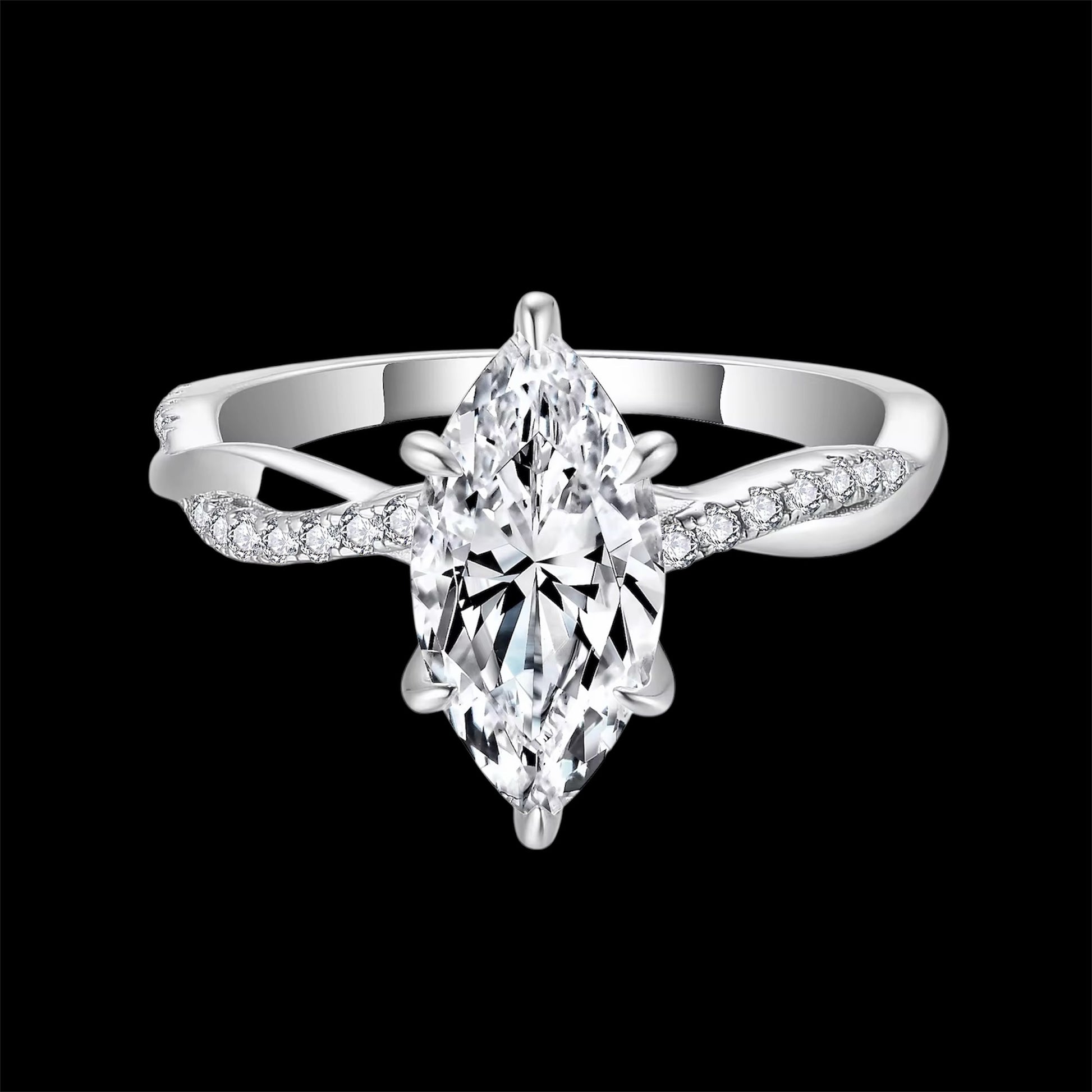 Bague Tressée en Moissanite VVS1 – Coupe Marquise, Argent S925 Finition Or